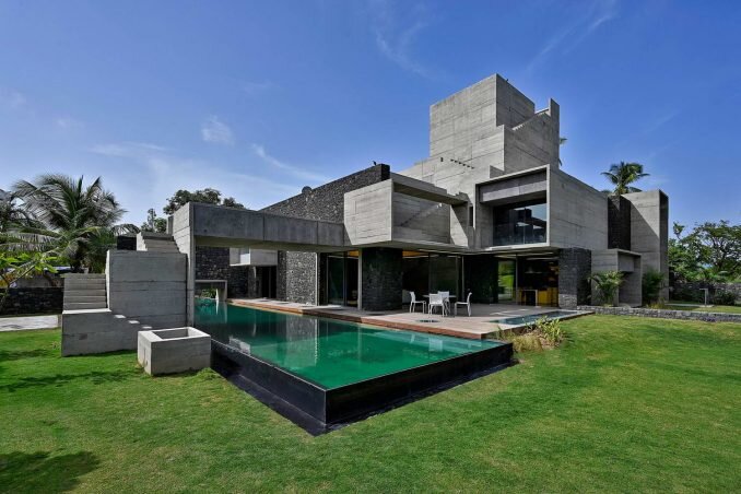 Сеть кубических бетонных объёмов и лестниц образует блочный семейный дом, который индийская студия Matharoo Associates построила в прибрежном городе Дюма...