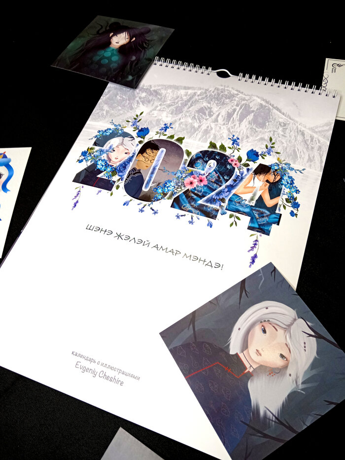 Решил сделать для местных магазинов календарь сосвоими иллюстрациями, пусть люди дарят друг другу подарки на новый год и радуют своих близких. Заморачиватся сильно не стал, сделал перекидной на 5 листов, правда не сразу нашол где хорошо напечатают но и эту проблему со временем решил. Плюсом нафигачил несколько видов открыток, не стал делать их книжкой а решил напечатать просто двусторонних, где на лицевой стороне иллюстрация а сзади место для подписи, получилось вроде тоже не плохо. Что то уже отдал в магазины а что то ещё в печати. На днях должны холст с лошадью изготовить, тоже будет интересно посмотреть как выйдет, я ведь до этого не печатал свои работы и сам все это вижу впервые)) Этот пост по сути не о чем, просто делюсь с вами новостями которые произошли за последнее время так что ссаными тряпками прошу не сильно швырать в меня. Так же сгоняли с малой в местный дацан который находится на лысой горе, прошли по тропе жизни, посмотрели местную живность которая состоит из ожиревших о