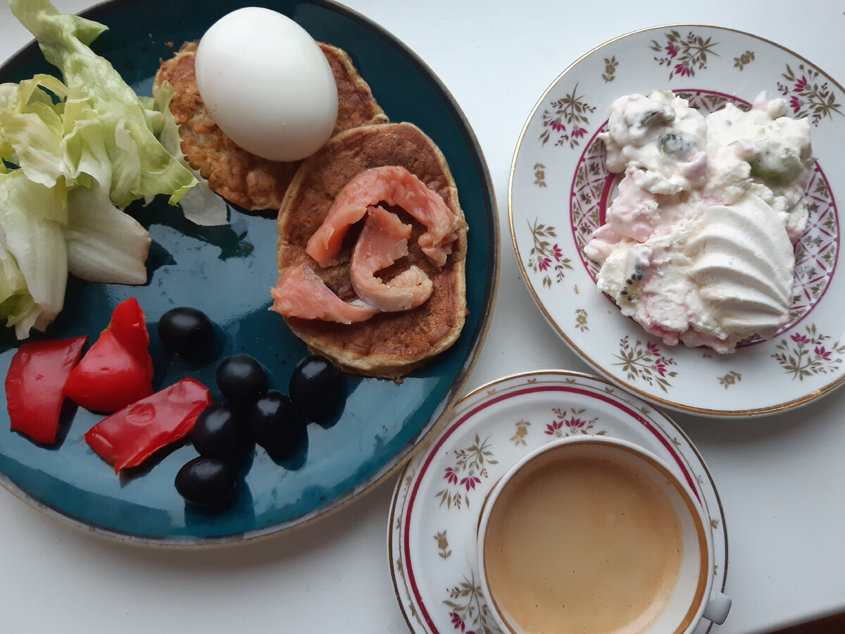 В октябре я начала Экономный марафон. В ноябре мы продолжаем марафон. Многие из вас меня поддержали, так что мы марафоним большой командой💪 О моих запасах и расчете бюджета на месяц ЗДЕСЬ Правила марафона ЗДЕСЬ Каталог рецептов К завтраку испекла оладьи из кабачка, к ним - малосольная кета и 5-тиминутное яйцо. И к кофе - зефирный десерт. Тортом его назвать трудно, он мягкий и воздушный, на тарелку красивым кусочком положить сложно. Удобнее делать в маленьких формочках. И...мои сказали - слишком сладкий! Хотя раньше ели и нахваливали. Давно его не делала. Сейчас у нас намного меньше сахара в рационе, и видимо, вкусовые рецепторы перестраиваются 👌 И я очень этому рада! На обед у нас гороховый суп с копченой голенью индейки. После обеда кофе с зефирным тортиком - скончался он у нас за день🤗 На ужин ...ну да😂 - снова колбаски. Сегодня сварила колбаски, потом обжарила на сковороде. К колбаскам макароны, салат из моркови с тертым сыром и чесноком, квашеная капуста, огурчики как в Мак