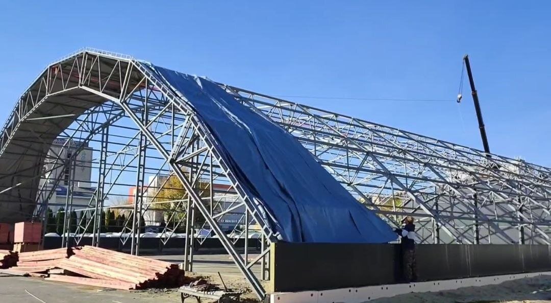 В волгоградском ЦПКиО монтируют крышу для самого большого крытого автодрома в России