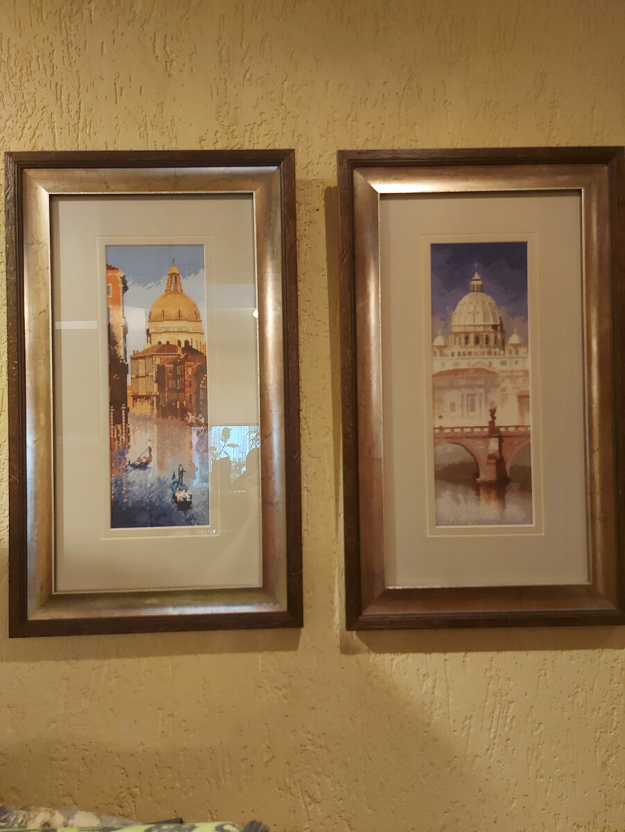 Продолжаем. Повышивала я наборы, присмотрела себе еще много всяких других. Круги Клейтона вышились. Так же позже я вышивала еще 2 панельки . Рим и Венеция. Между делом вышила пару милых картинок от РТО для племянниц, и параллельно читала форумы по вышивке. В то время на форумах кипела жизнь и все общение проходило там. Комфортней всего мне было на форуме Златая.ру Там тогда активно обсуждались схемы ГК, Хаед и другие зарубежные производители. Но ГК был в приоритете. Мы выясняли какие новинки хорошие, как делать предзаказы, как готовить исходник, сравнивать отшивы. Тогда были сделаны только-только первые шаги в сторону схем прогонным способом.Как освоить ПМ, и много другой полезной информации. До сих пор благодарна всем, кто делился своим опытом и наблюдениями на этом форуме. Там же я познакомилась с большинством своих вышивальных подруг и мы дружим до сих пор! Ну а с Леной Шубиной нас связывает не только крепкая дружба, а и общее дело, которым мы увлечены и работаем сообща!❤ Насм