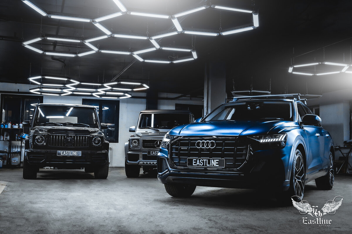 Сегодня на повестке дня у нас спортивный пятидверный кроссовер премиального класса – Audi Q8. Автомобиль выпускается с 2018 года и на сегодняшний момент существует первое и единственное их поколение. Владелец одного такого экземпляра не так давно приехал к мастерам-детейлерам в тюнинг-ателье Eastline Garage, для того чтобы решить сразу парочку проблем, связанных с внешним видом авто: