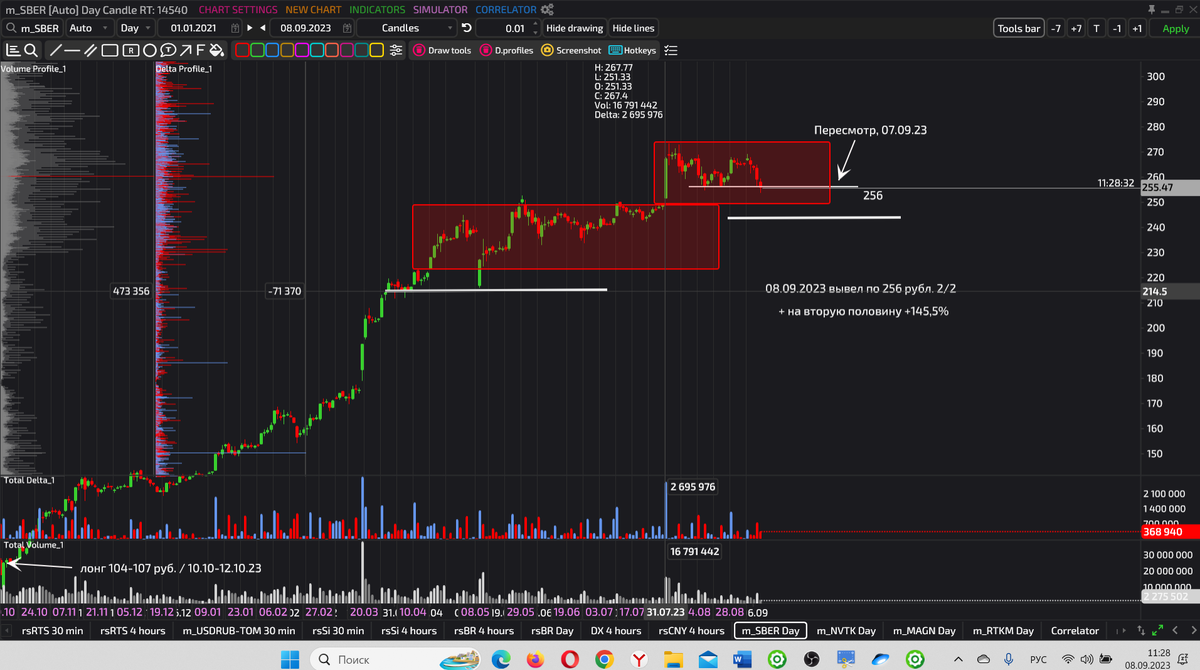 В ПРЕДДВЕРИИ КОРРЕКЦИИ ВЫВОДИМ АКЦИИ ИЗ ПОРТФЕЛЯ, ОСТАВИЛИ ТОЛЬКО ОДНУ. ПРОГНОЗ ПО РУБЛЮ 11.09.2023г