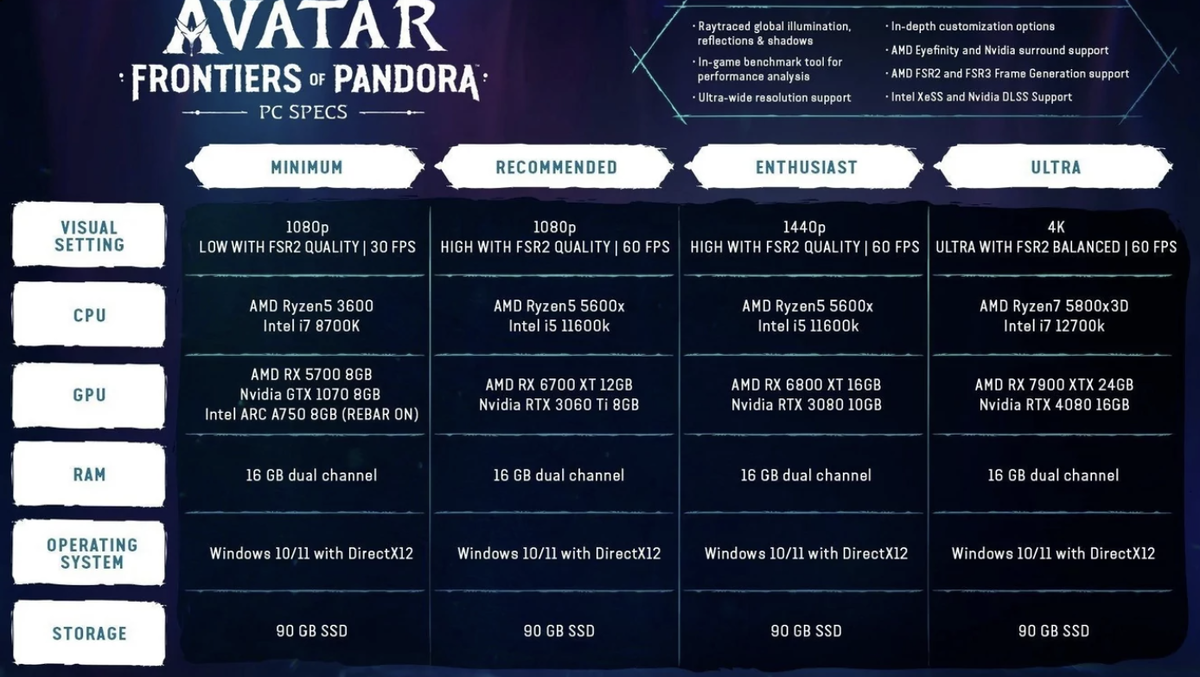 Для комфортной игры в Avatar: Frontiers of Pandora потребуется мощный ПК