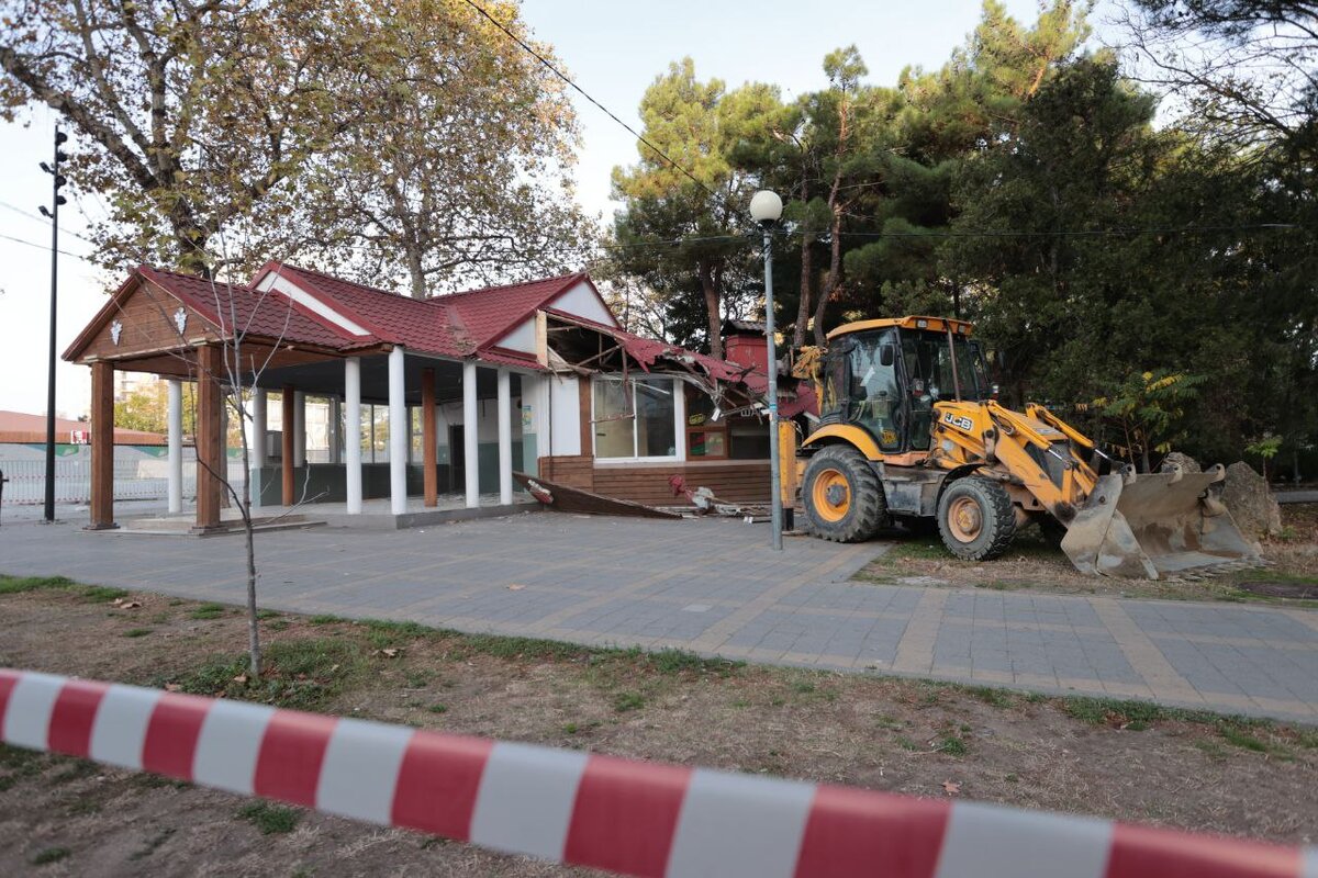 Администрация постоянно что-то сносит, ломает, строит новое, благоустраивает и экспериментирует... или, как в данном случае, с карты города исчезает и уходит в историю очередной объект. Как сообщают предствители мэрии города делается это в рамках: Для тех кто плохо ориентируется в городе Анапа, в её архитектуре, стилях и разного рода зданиях, сообщаю. Речь идет про здание, расположенное напротив Центра культуры "Родина" на Театральной площади. Ранее здесь находилось кафе "У Платана". В прошлом году здание отремонтировали, реконструировали, красифо оформили внешний вид. И в сезоне 2022 года здесь открылось кафе "Кавказ". Но! Даже красивое отремонтированное здание не долго продержалось. Под натиском глобальной реконстуркции Театральной площади, решениями чиновников и ковша
