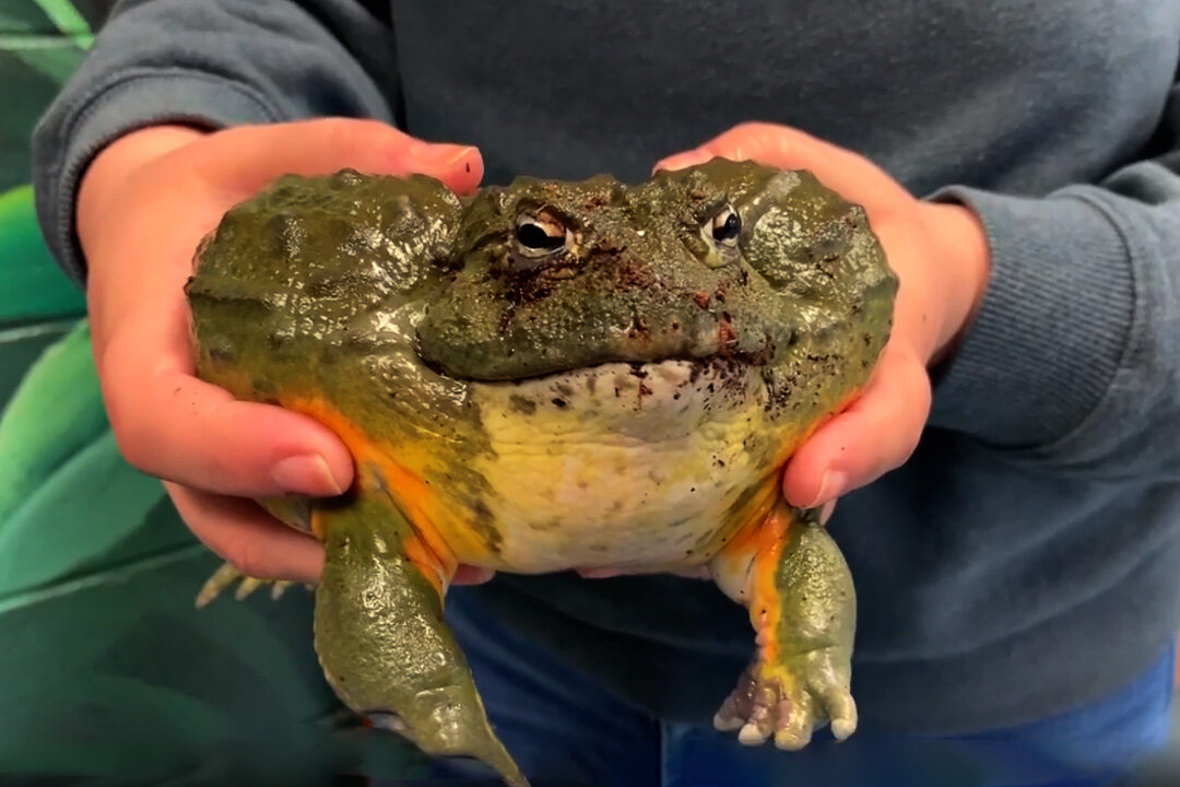 Мне всегда лягушки казались чем-то безобидным. А этот конкретный вид так и вовсе показался милым пухляшом, когда я впервые увидел его в Ростовском зоопарке. И хотя с тех пор прошло уже три десятка лет, вполне может быть, что он до сих пор жив. Итак, разрешить отрекомендовать – лягушка-водонос (Pyxicephalus adspersus), одна из самых больших лягушек нашей планеты. Она достигает в длину четверти метра и может набирать массу около полутора килограммов, занимая почётное третье место, уступая золотую и серебряную ступени пьедестала лягушке-голиафу и шлемоносому свистуну. Эта агрессивная и очень уверенная в себе амфибия, при виде опасности бесстрашно кидается на обидчика, при этом у неё (что непривычно осознавать) имеются острые зубы и поистине стальные челюсти с исключительно крепкой хваткой. Такой палец в рот не клади. Данное земноводное придерживается предельно простой диеты: она поедает всех, кто может поместиться ей в пасть и уступает ей в скорости. В отличие от большинства лягушек, она