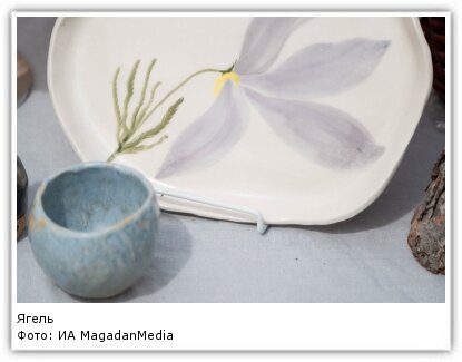 Уже два года существует фестиваль "Ягель" в Магадане. Это не просто мероприятие, это сообщество неравнодушных творческих людей города. В областном центре появилась площадка, на которой хэндмейкеры смогли показать, на что способны "золотые руки" жителей Колымы. Фестиваль проходит в главных общественных пространствах Магадана, свои изделия мастера демонстрируют сотням горожан. Авторы чувствуют каждую деталь, наделяют предметы душой, делают их не только полезными и значимыми, но ещё и привлекательными. Каждое их изделие — это идея, которая родилась в определенный момент и воплотилась в потрясающие предметы интерьера, необычные кружки, затейливые сумки с изображением лиц. Их главная цель — создать атмосферу, подарить приятные чувства и сохранить этот момент счастья и покоя надолго. Специально для проекта "Колымский характер" мастера рассказали, что их вдохновляет. "Наивное искусство 21 века" Валентина Вершинина создает предметы из керамики — авторскую посуду, подсвечники, предметы декора.