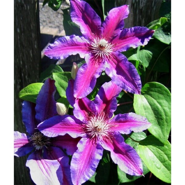 Клематис сорта Akaishi – описание и особенности вида Сорт клематиса Акаиши был выведен в Японии. Яркие крупные цветки пурпурного цвета, с сочной широкой малиновой полосой по середине лепестков, достигают диаметром до 15-20 сантиметров. Тычинки у соцветий светлые, а края лепестков – волнистые. Сам цветок формирует от 5 до 8 лепестков. Фиолетовый оттенок цветков может варьироваться от бледного, почти белого до темного и насыщенного. Клематис Akaishi обильно зацветает дважды в год – в период с мая по июнь соцветия зацветают на побегах предыдущего года, а с середины июля распускаются бутоны на новообразовавшихся лианах. Вторую волну характеризует не менее обильное цветение, но соцветия при этом будут достигать меньшего размера. Оформить заказ икупить сорт клематиса Akaishi по низкой ценеможно в разделе «Клематисы» онлайн-каталога питомника «Netgreen». Такое плетущееся растение для сада широко используется для украшения альтанок, открытых лоджий и балконов. а также – в ландшафтном дизайне.