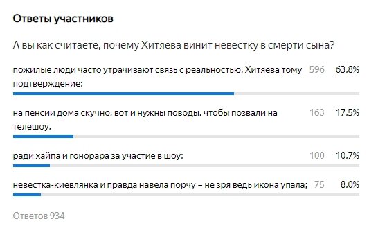 Прежде чем продолжить, позвольте на секунду отвлечься. Опубликую результаты опроса, который провели в скандальной публикации о Людмиле Хитяевой. В комментариях было много несогласных с моей точкой зрения, однако же опрос показал, что я не так уж не права. Спасибо всем, кто принял участие. ♥