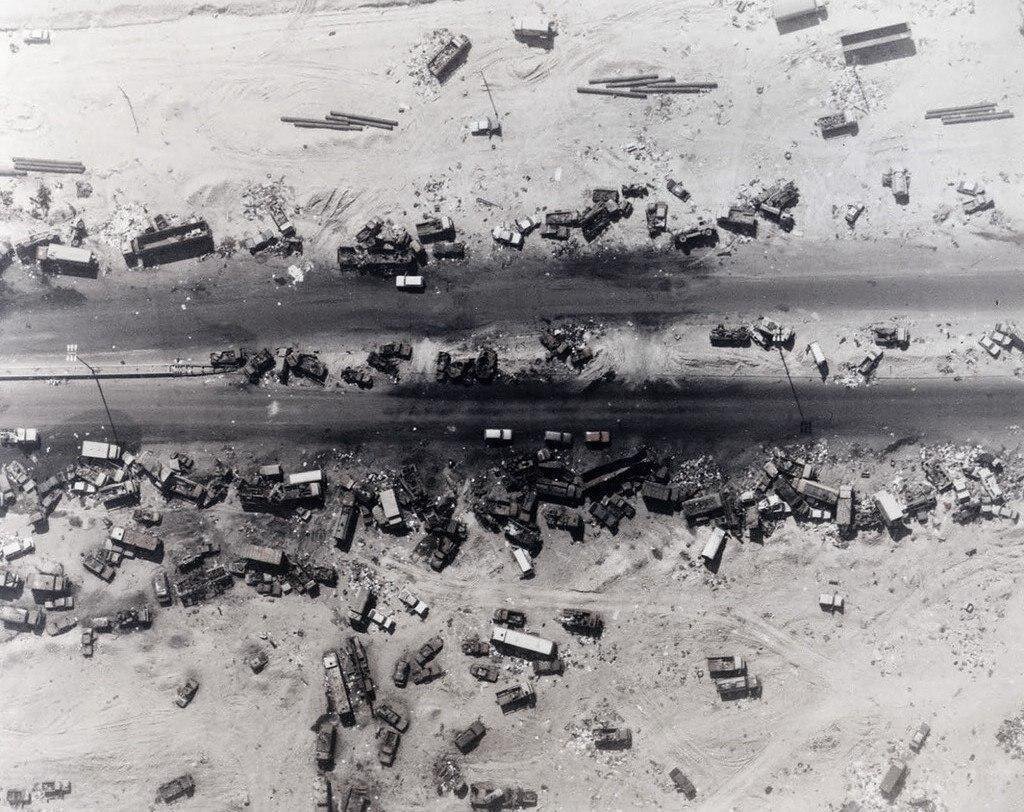 В соответствии с инструкциями президента Буша, американская коалиция начала разрушительные обстрелы иракских сил, отступавших в направлении Багдада. Это была часть стратегии, чтобы убедить иракское руководство в полной беспомощности и вынудить их соблюдать условия перемирия. Бомбардировки были направлены на военные колонны и иракские позиции.