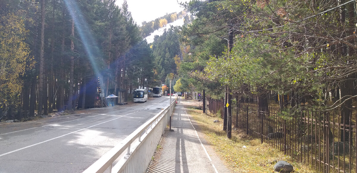Чегет – это неофициальное, но устоявшееся название двухвершинной горы на Кавказе. Та вершина, что повыше называется Донгуз-Орунбаши (высота - 3769,3 м), а та что пониже - Азаучегет-Карабаши (высота 3416 метров). Чегет популярный горнолыжный курорт. Наверх туристов и горнолыжников доставляют старинные подъемники. Нижняя станция канатной дороги расположена на Поляне Чегет и так и называется «Поляна Чегет». После гуляния по экологической тропе из Чегета на поляну Нарзанов я плотно пообедал в единственной терскольской столовке и отправился искать нижнюю станцию подъемника. На поляну Чегет я пришел видимо уже после завершения основного наплыва автобусников (т.е. туристов приехавших на автобусах с Кавказских минеральных вод). Поляна Чегет была пуста. Я даже немного растерялся. В начале октября горнолыжный сезон на Чегете еще не начался, поэтому туристов в полдень было немного. Поляна Чегет считается успешным горнолыжным курортом с достойным уровнем сервиса, но я особенного шика тут не