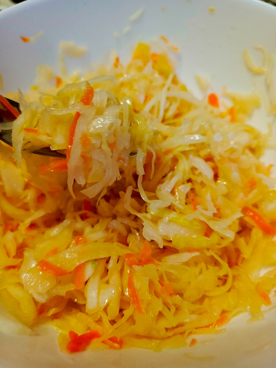 Далее , нашу капусту надо хорошенько размять, пока не даст сок