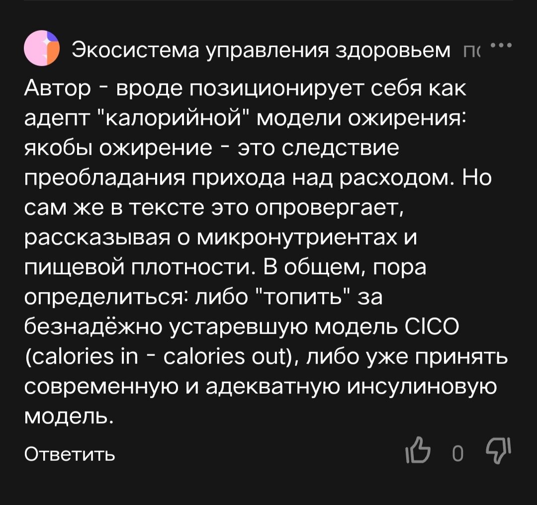 Вот я была адептом инсулиновой теории ожирения в 2015 году и отвергла ее как ложную еще в 2018, а вы до сих пор пишете, что она современная, серьезно?