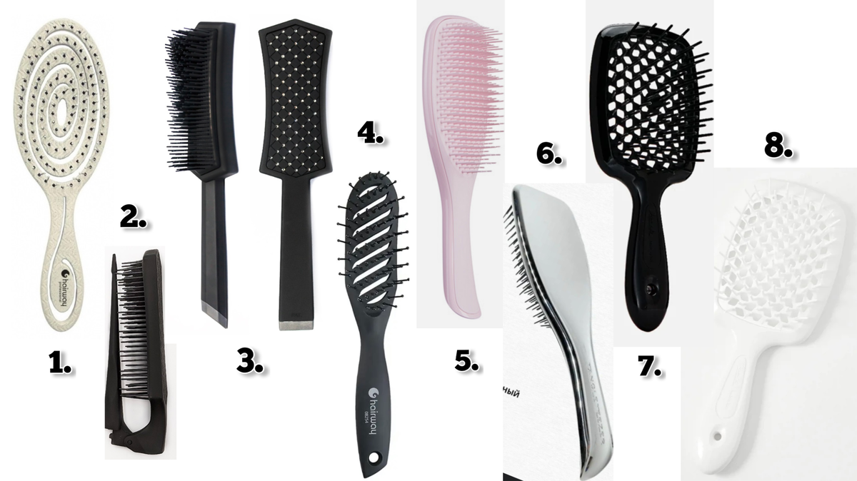 Расчески, которыми я пользуюсь в повседневной жизни⏬️ У меня длинные, густые и некрашеные волосы Я перепробовала множество расчесок, расскажу на каких остановилась и почему 1️⃣ Мой фаворит- скелетная расческа HairWay для расчесывания на каждый день, за счет своего строения максимально подстраивается под изгибы головы и очень мягко прочесывает густоту, обладает массажным эффектом и плюс ко всему на нее можно спокойно сушить феном 2️⃣ Ставвер складная силиконовая расческа Диамонд, её плюс в компактном размер, красивая, удобно брать с собой в маленькую сумочку, мягкая щетина 3️⃣ Ставвер силиконовая расческа Диамонд средняя, имеет мягкую щетину, но выстроены они не по форме головы, относительно приятное софт тач покрытие, красивая 4️⃣ Карбоновая туннельная щетка Hairway, зубья редкие, длинные и выстроены по форме головы, ей расчесывать будет немного больнее, но на нее удобно сушить длину, а также очень круто ставить корень на объем 5️⃣ Tangle Teezer оригинал, в целом приятно расчесывает в