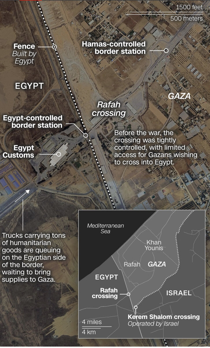 Рафах — единственный пограничный пункт Газы, который не контролируется Израилем, который закрыл свои переходы с этой территорией после нападения ХАМАСа 7 октября. Он стал критически важным местом, поскольку гуманитарная ситуация на территории ухудшается.
