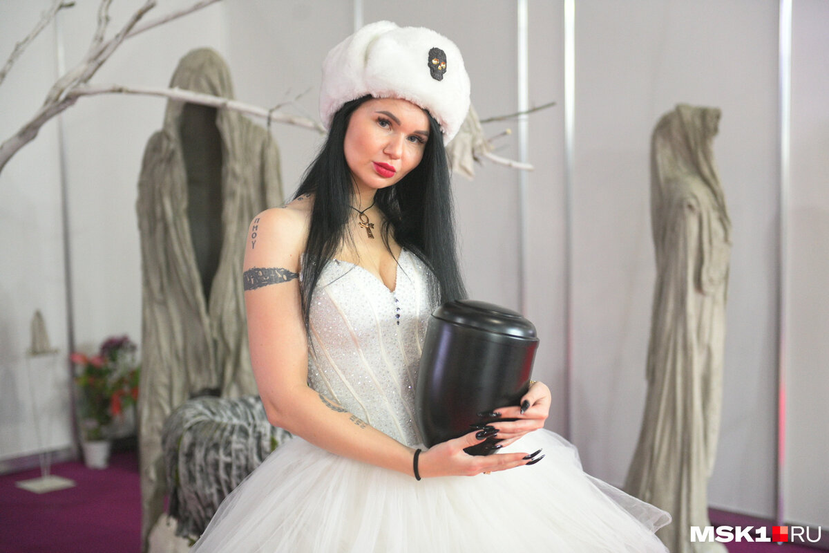 У входа в «Крокус Экспо» мы встретили Ольгу, которая занимается цифровизацией кладбищ. То есть она фотографирует могилы, которые потом выкладываются на специальный портал, где можно найти точное место и фотографии захоронения. Зарабатывает на этом около 65 тысяч рублей в месяц. На выставку пришла проникнуться похоронами еще больше.