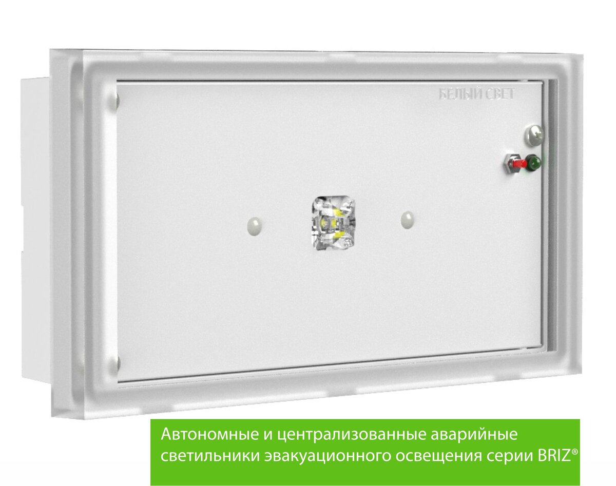 Аварийные светильники BRIZ предназначены для освещения путей эвакуации и антипатического освещения в помещениях с повышенной запыленностью и влажностью. Благодаря компактным размерам и высокой степени защиты, BRIZ находит применение в технических помещениях, тамбурах, лестничных площадках и т.д. Модификации L1 - широкая осевая КСС (тип Ш), световой поток в аварийном режиме 240 лм. L2 - широкая КСС (тип Ш) – световой поток в аварийном режиме 240 лм. Особенности и преимущества Корпус и рассеиватель из светостабилизированного поликарбоната Прочный, долговечный, не поддерживающий горения материал, выдерживает испытание раскалённой проволокой 850°С. Технология DUOLED – срок службы источника света до 150 000 часов (для световых указателей постоянного действия) Использование двух параллельных цепей светодиодов (основной и резервной) позволяет продлить срок службы светодиодных модулей до 150 000 часов, тем самым увеличивая долговечность системы аварийного освещения и уменьшая расходы на экс