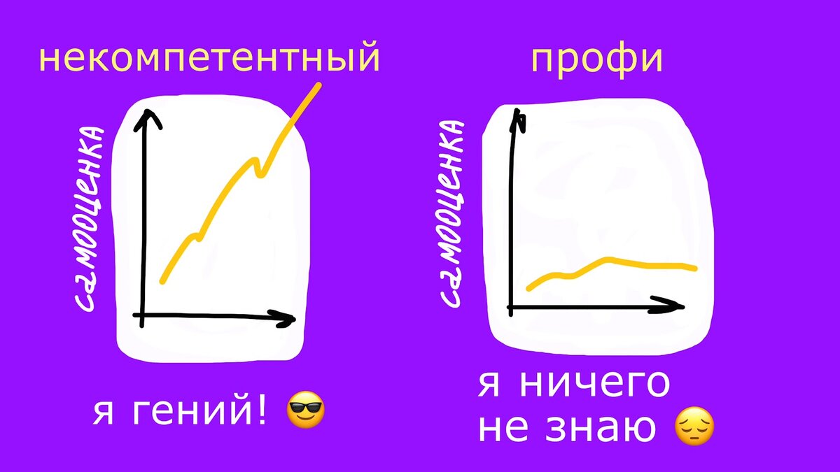 Есть у вас коллега-зазнайка? Только начал чему-то учиться, а все уже слушают его как великого гуру? Он никогда не достигает больших результатов и прикрывается работой коллег-профессионалов, — но их награды забирает себе. Знаете таких? Расскажем, откуда они берутся и как отобрать у них законную славу. А еще презентовать свои достижения мы учим на курсах по soft skills — приходите, чтобы вашу работу ценили достойно! Что говорит теория? Эффект назван в честь открывших его ученых: американских социальных психологов Дэвида Даннинга и Джастина Крюгера. Они изучали работы великих предшественников и поняли, что о комбинации глупости и смелости уже говорили раньше. Вот 2 ключевые цитаты Чарльз Дарвин: «Уверенность чаще порождается невежеством, нежели знанием». Бертран Рассел: «Одно из неприятных свойств нашего времени состоит в том, что те, кто испытывает уверенность, глупы, а те, кто обладает хоть каким-то воображением и пониманием, исполнены сомнений и нерешительности». Ученые сформулировали