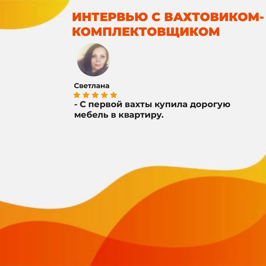 - Светлана, расскажите, как давно вы работаете вахтовым методом? - С августа. - Какое общее впечатление ? - Все устраивает, все замечательно. - Наша цель - открыто поговорить, чтобы люди, которые живут в регионах, узнали о такой возможности - работа вахтовым методом. Поделитесь своим мнением. Что вам нравится при работе вахтовым методом ? - Условия работы нравятся. Даже если ты работаешь в Москве, то на выходные приезжаешь домой и проводишь их дома с семьей, большой бонус то, что зарплата хорошая на руках. Также условия проживания хорошие. - Какая у вас зарплата чистыми в месяц ? - 105 000₽ за 30 дней - Вы работаете по какой вакансии? - Комплектовщик - Сложно было обучиться с нуля этой работе? - Абсолютно нет. Обучение длится полдня, потом становишься на линию и второй день уже оплачивается. - Вы из какого города? - Мордовия, Саранск. - Что такого интересного хотели бы рассказать для тех, кто еще не знает, что такое работа вахтой и боиться, переживает. -