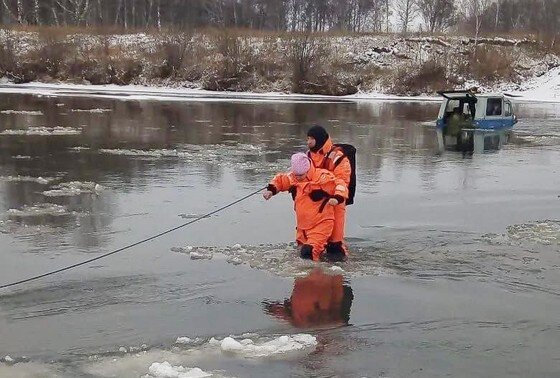 Появилось видео эвакуации женщины из УАЗа, который застрял в ледяной реке