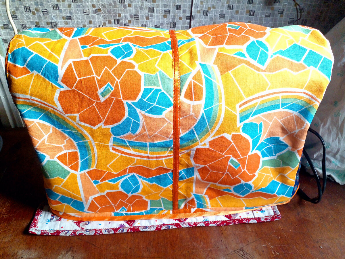 Доброго времени суток. В последнее время я совсем забыла о своей машинке, но сегодня она стала выглядеть на столе по новому. Свежий вид придал моей швейной подруге необычный чехол. Теперь разберем как его сделать. ----------------------------------- Материалы и принадлежности: ----------------------------------- Сначала я всегда делаю рисунок изделия, потом рассчитываю размеры деталей. Советую сделать то же самое, если будете дополнять чехол. А если нет, то смотрите ниже. Делаем замеры машинки как показано на рисунке выше. Ко всем размерам делаем + 2 см, для свободной посадки и швов. На основе измеренного начертим выкройку деталей на бумаге. Начертили, вырезали - отлично! Выкраиваем из уплотнителя квадрат, вертикальный прямоугольник и прямоугольник с закругленным верхом. Горизонтальный прямоугольник - выкраиваем из ситца, который оборачивает квадрат-уплотнитель. Боковую (4шт.) ,центральную (2шт.) части выкраиваем тоже из ситца. Первым делом обрабатываем карман, закрывая его в ситце и