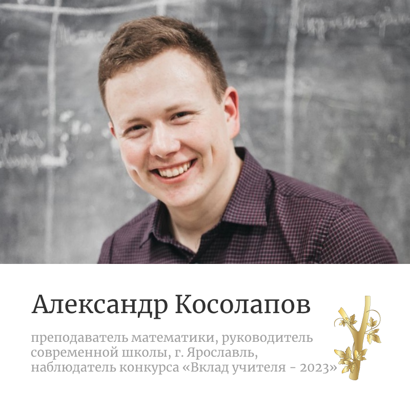 Александр Косолапов, преподаватель математики, руководитель современной школы, г. Ярославль, наблюдатель конкурса «Вклад учителя – 2023»; Екатерина Карабекова-Толстых, учитель английского языка, г. Москва, участник конкурса «Вклад учителя – 2022», «Вклад учителя – 2023»; 18 октября