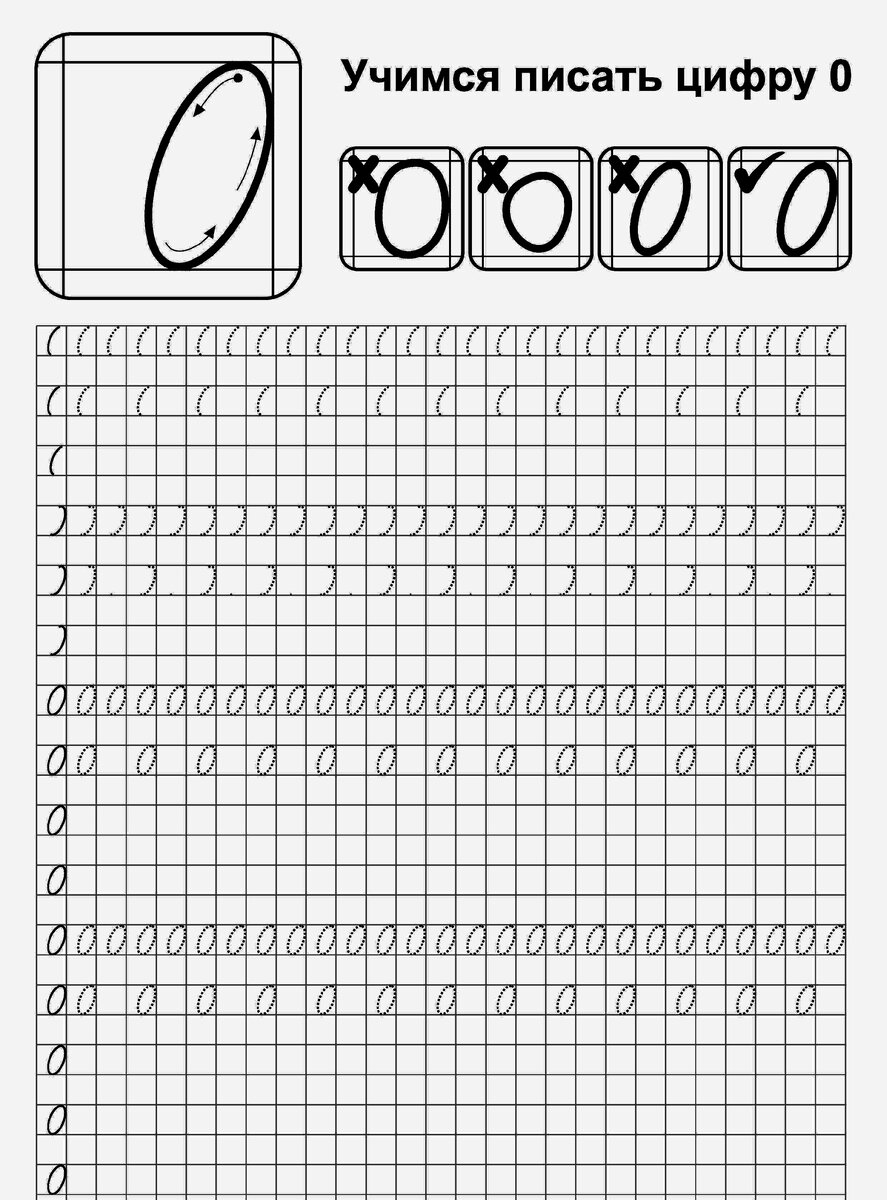 Прописи цифры от 0-1. 6-8 лет. 1 класс.