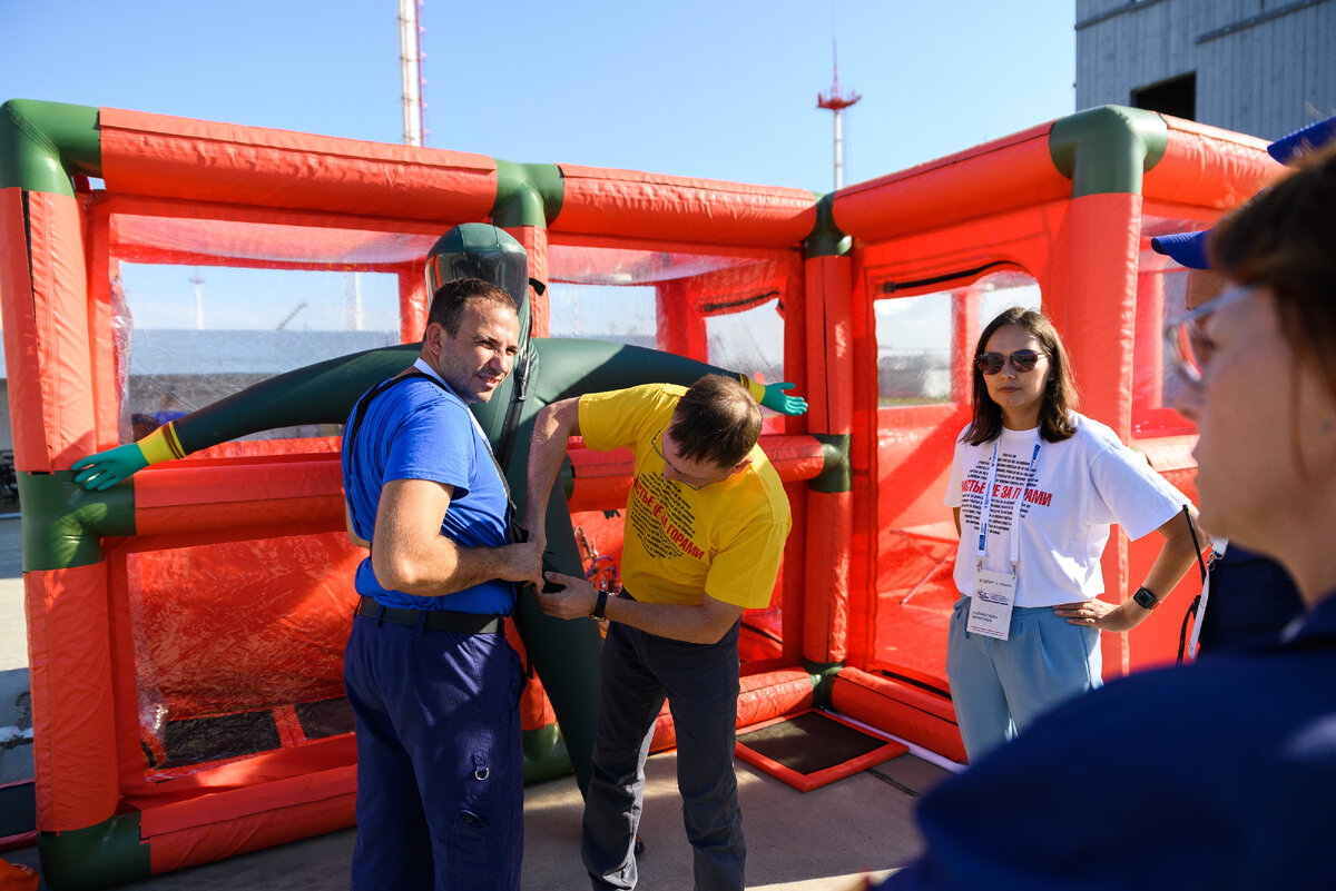 Кроме этого наши специалисты привезли обновленные модели СИЗ с автономной подачей воздуха для защиты оператора: изолирующий костюм и шлем.