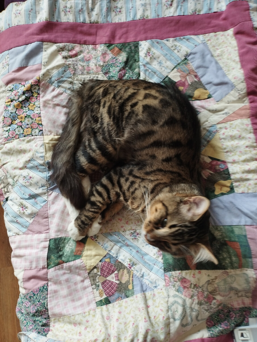 Кота в постель мы не берем, но утром я ему разрешаю немного со мной поваляться)))