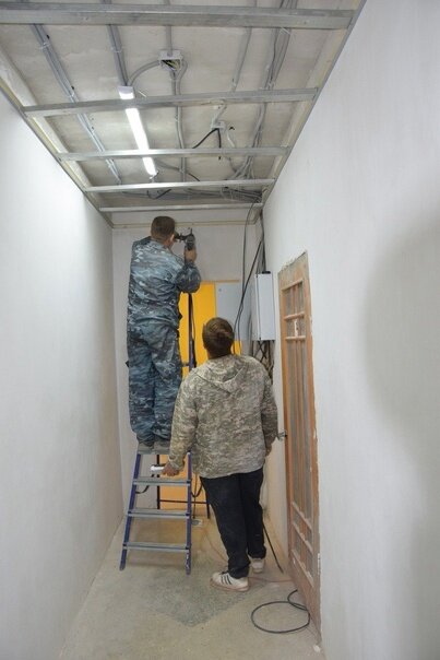 В алюминиевом корпусе теперь новая электрика, внутренняя система водопровода и окна. Проводится устройство перекрытия из металлического каркаса над помещениями и перегородок, отделываются стены и потолки под покраску, ремонтируется напольное покрытие и устанавливается ограждение для зонального разделения помещений.