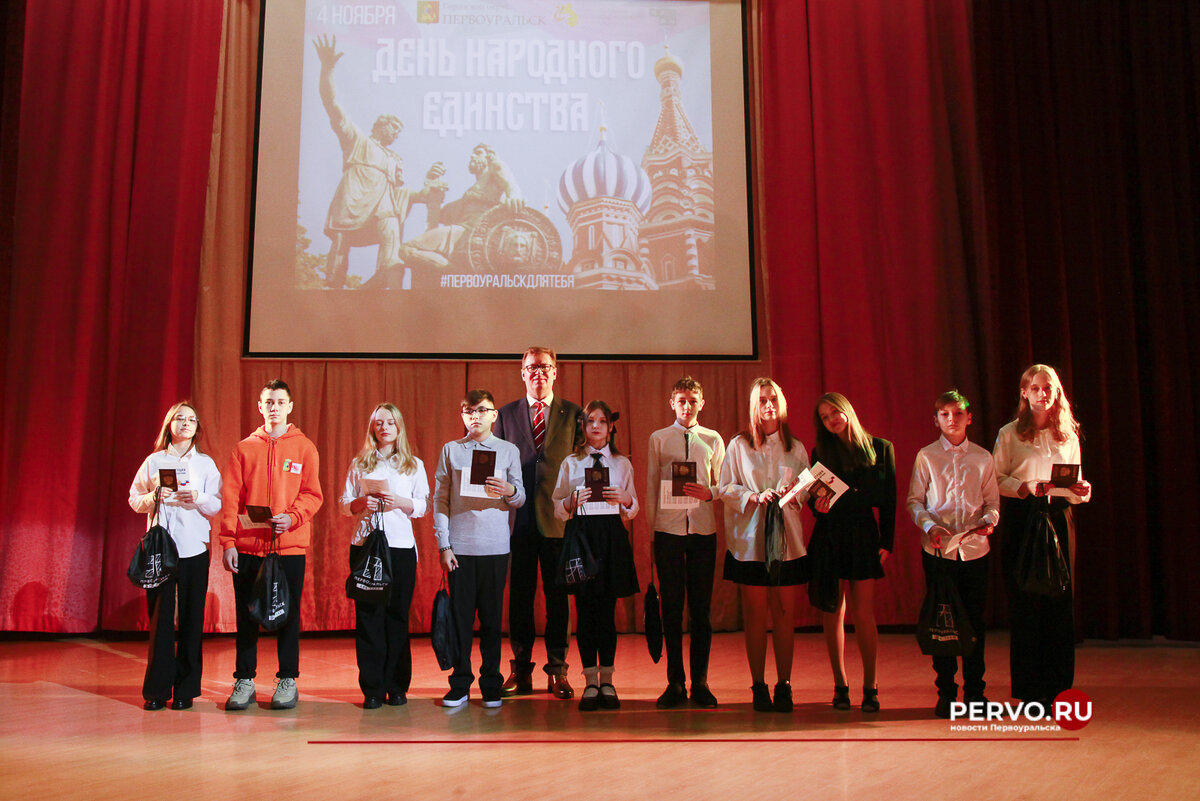 Сегодня в Центре развития детей и молодежи для жителей Первоуральска была организована концертная программа с участием местных коллективов. В рамках мероприятия Глава городского округа Первоуральск Игорь Кабец вручил паспорта десяти детям. – В преддверии Дня народного единства наше подрастающее поколение получит свой первый и самый важный документ – паспорт. Ребята, мы верим, что вы будете использовать новый статус гражданина с честью и достоинством. Продолжайте учиться, развиваться и расти, и помните, что наша Родина всегда будет рядом и поддержит вас в любых начинаниях, – отметил Игорь Кабец. Паспорт гражданина Российской Федерации — основной документ, удостоверяющий личность. Этот документ обязаны иметь все граждане России, достигшие 14-летнего возраста и проживающие на территории Российской Федерации.