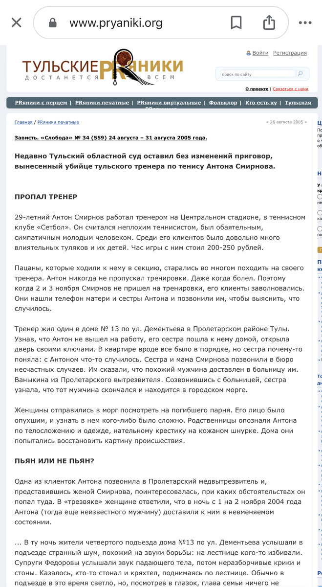 Недавно Тульский областной суд оставил без изменений приговор, вынесенный убийце тульского тренера по тенису Антона Смирнова.