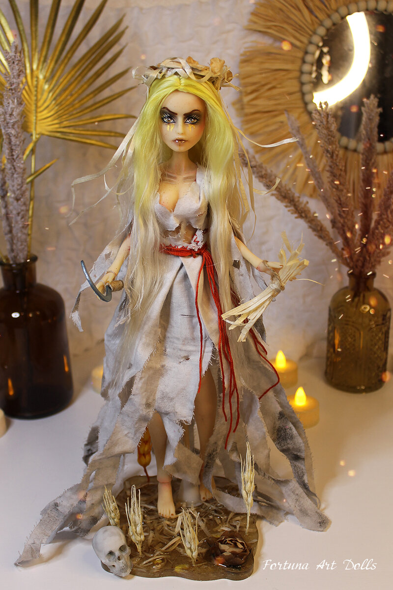 Пришло время показать еще одну куклу, подготовленную мной для выставки авторских кукол в Севкабель Порт ноябрь 2023 в Санкт-Петербурге в этом году. Полуденица - она бродит по полосам ржи, и, если кто в самый полдень работает или спит на солнцепеке, того берет за голову и начинает вертеть, пока не натрет шею до жгучей боли.