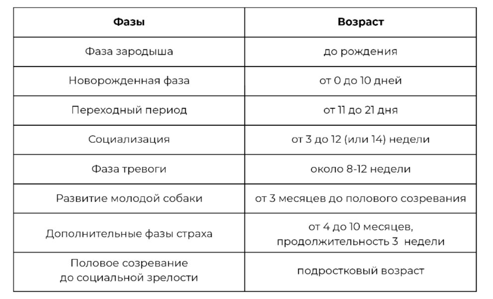 документированы. Это периоды времени, в течение которых щенок должен пройти определенный опыт, чтобы нормально развиваться.