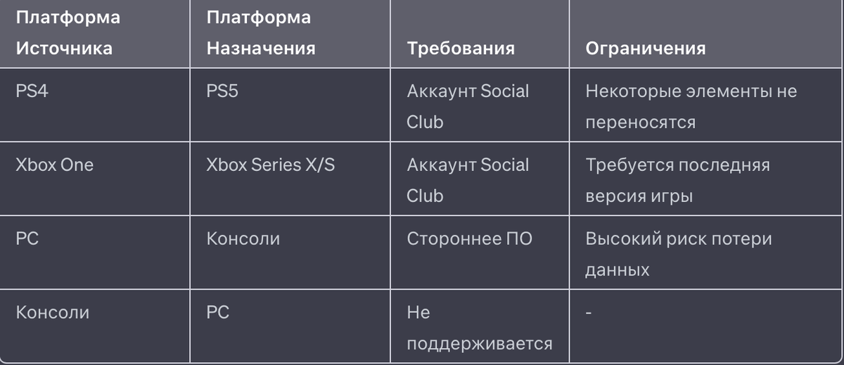 - PlayStation и Xbox: Перенос сохранений между этими платформами возможен, но требует аккаунта Rockstar Games Social Club.