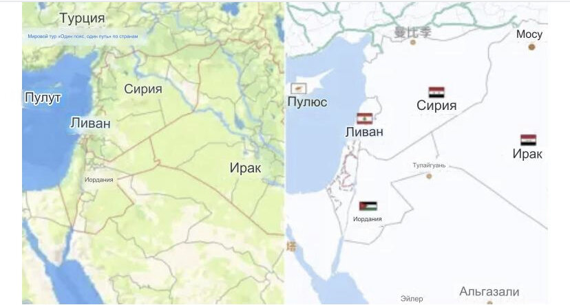Название страны «Израиль» в настоящее время не отображается на картах популярных мобильных приложений ведущей поисковой платформы Baidu или Amap, поддерживаемой Alibaba, хотя его территория и названия соседних стран четко показаны на виде региона. Например, на том же изображении видны страны такого же или меньшего размера, как Израиль, такие как Кипр, Ливан и Кувейт.