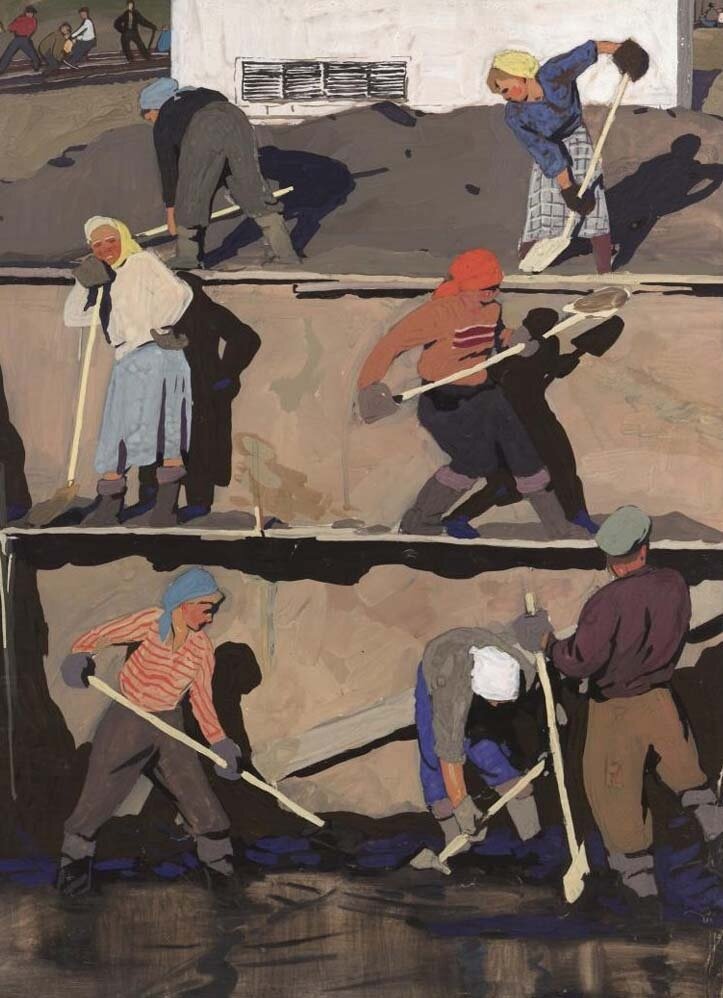 ======================= На строительстве дороги Тетки упираются, И клянут, как только могут, Гендерное равенство. . Комсомольская лопата - Метр на метр. Можно сходу перекинуть Кубометр. . Тетки строили дорогу, Перевыполнили план. Опираясь на лопату, Курит бригадир Иван.