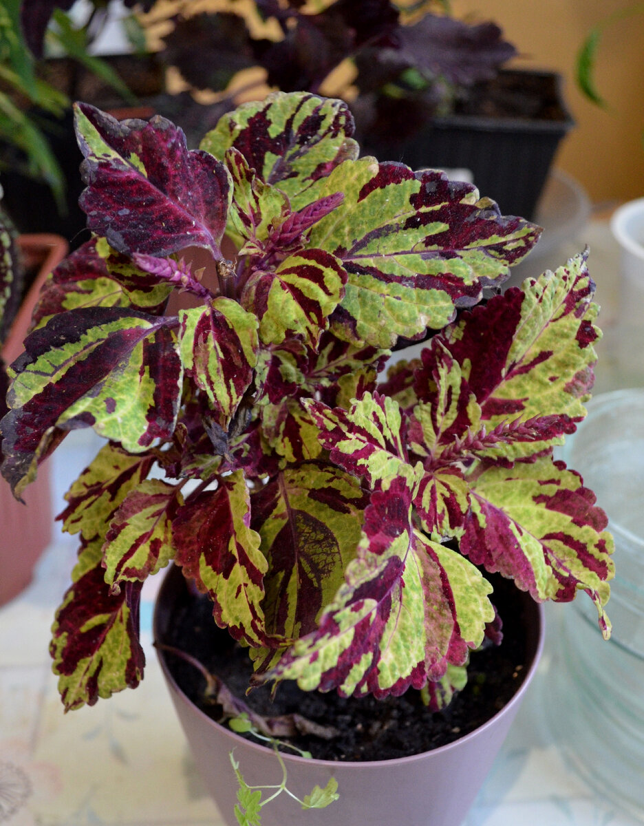В конце сезона начеренкованы, живут на работе (дома на них покушается кот). Подсветку организовать технически невозможно, поэтому просто на подоконнике. Побледнели, конечно, уже. Но, думаю, до весны дотянем) Часть старые - пару лет существуют в таком режиме. Часть новые. А вот такими они были летом. Росли в ведрах, им нравилось.