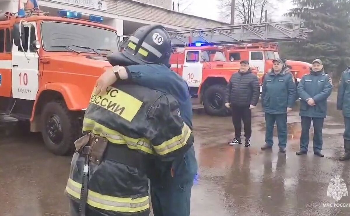 Алексинские пожарные проводили коллегу на пенсию холодным «душем»: видео