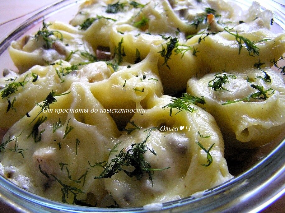 Всем доброго дня! Мне очень нравится французская горячая закуска под названием "Жюльен", которая готовится в специальных формах кокотницах. Но, к сожалению, когда-то у меня не было этой посуды для запекания и однажды мне пришла идея запечь жюльен в съедобных "чашечках" - лумакони. Получилось оригинально и вкусно. Попробуйте! Ингредиенты: