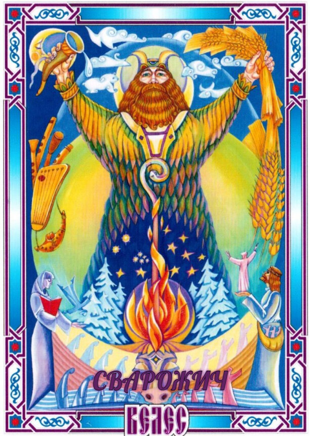 В ночи Велес идет по Сварге, по молоку Небесному, идет к своему чертогу. А на Заре возвращается к воротам. Там мы Ждем его, чтобы начать песни и славить Велеса от века и до века. И славить его Храмину, которая блестит многими Огнями, И становится вся жертвенницей чистой. Это Велес научил Праотцев наших орати землю, засевать Целины и жать снопы колосистые на стружденных полях, и ставить сноп при огнище в доме, и почитать Его, как Отца Божьего, Слава Велесу!