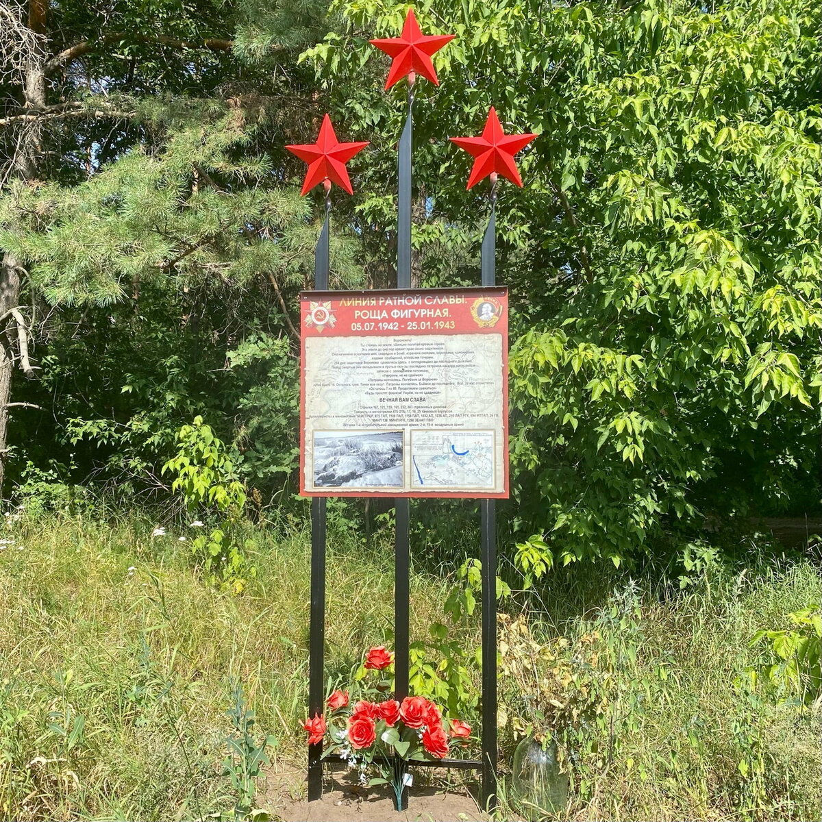 14 июля 1942 года начались непрерывные бои за Фигурную рощу. Почему упоминается именно Фигурная, а не Малая? Потому что Малая соответствовала своему названию и была действительно маленькой, а вот Фигурная была, да и сейчас остается, уже более обширным лесным массивом. Первыми Фигурную рощу атаковали наши танкисты. Немцы не не выдержали и дрогнули после того, как наши прорвали оборону. Затем наши танкисты вышли на вершину бугра и стали расстреливать колонну фашистов идущую по дороге. Но фашисты тоже не стали просто так наблюдать и контратаковали. Нашим пришлось отступить, потому как немцев было гораздо больше. Так начались бои в Фигурной роще, которые не прекращались еще полгода.