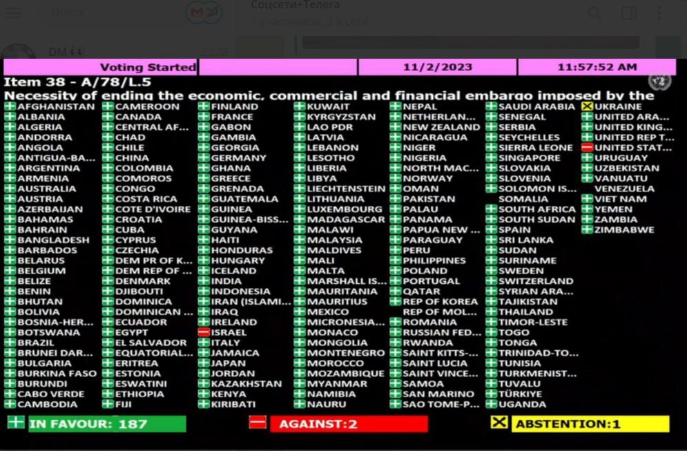 Сегодня состоялось заседание Генассамблеи ООН, на котором рассматривался ежегодный проект резолюции против экономической, торговой и финансовой блокады Кубы, организованной США.