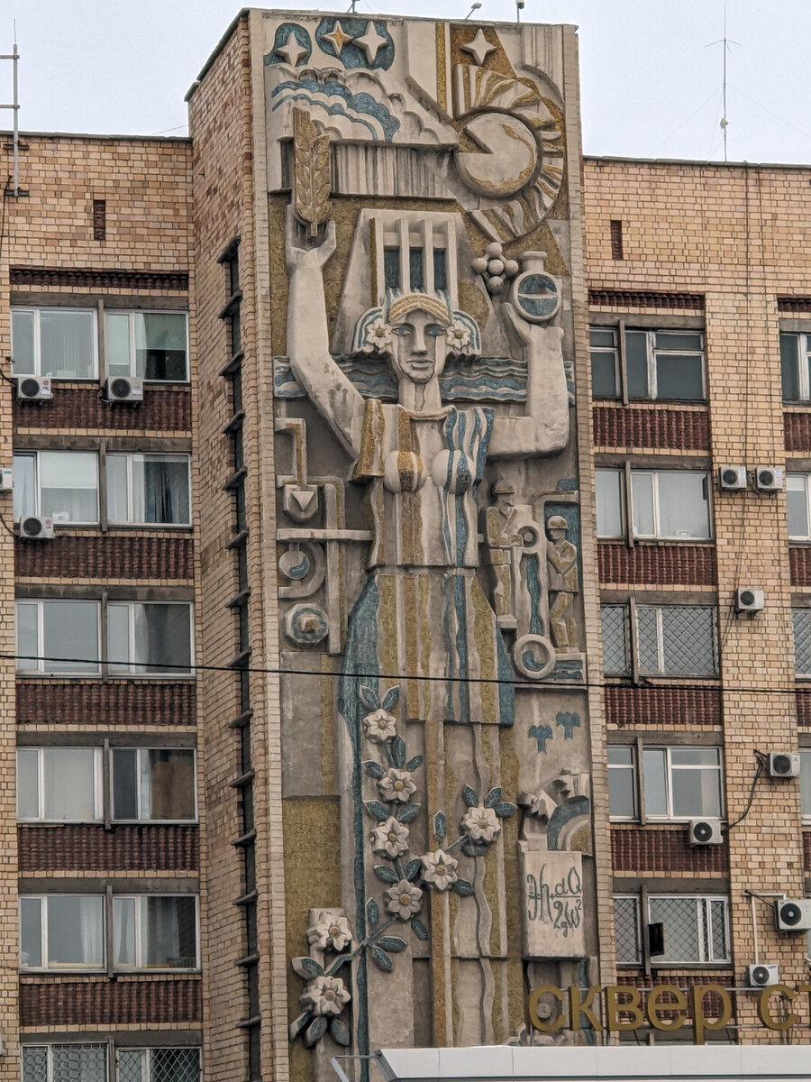 Подойдём поближе... 150м2 панно, 2,5 тонны смальты. Пишите в комменты, напугало бы вас сие, будь вы ребёнком, или заинтересовало. Как по мне - настолько сюрно, что даже красиво и интересно. Полистайте галерею.