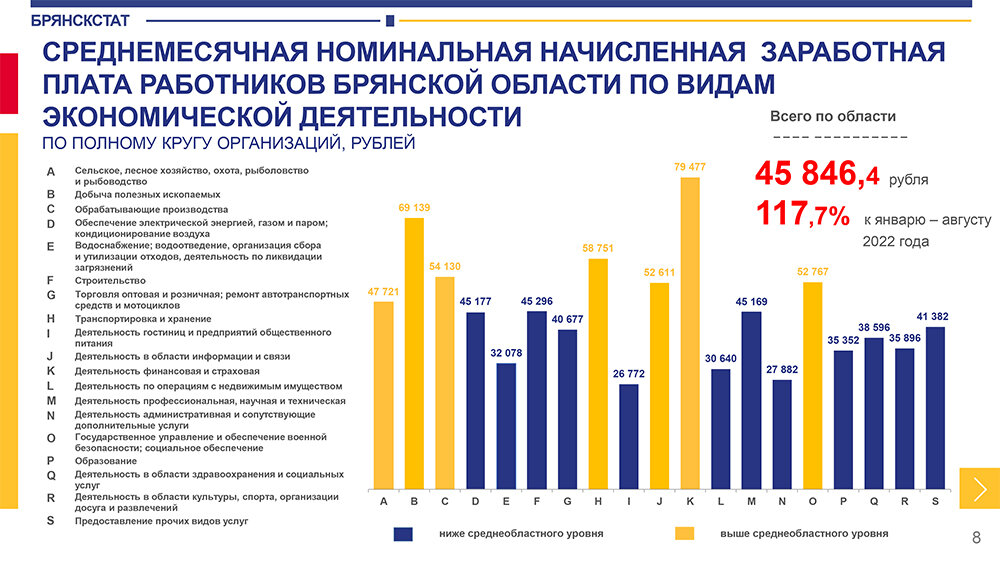 Среднемесячная номинальная зарплата в Брянской области в августе составила 46094 рублей