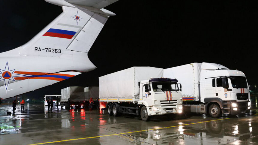 Доставку организовал президент РФ Владимир Путин. Фото: МЧС России / ТАСС; 5-tv.ru Два военных самолета Ил-76 МЧС РФ отправили 28 тонн гуманитарной помощи специально для мирного населения, проживающего в секторе Газа. Об этом сообщает само ведомство и делится видео. Известно, что доставка организована по поручению президента РФ Владимира Путина. Груз должен включать в себя медикаменты, а также перевязочные и кровоостанавливающие средства для помощи раненным. Гуманитарную помощь от России должны будут передать членом Египетского общества Красного Полумесяца, они отвечают за направление необходимых лекарств и препаратов жителям сектора. До этого Россия уже отправляла гуманитарную помощь на Ближний Восток в конце октября, тогда речь шла о 27 тонн продовольствия. Ранее 5-tv.ru рассказал, как палестинцы пытаются сбежать от обстрелов в секторе Газа.