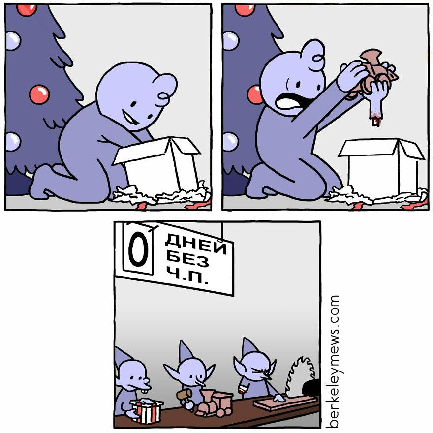 Люди делятся на две категории: те, кто смеется над мрачными шутками, и те, кто такие шутки терпеть не может. Но и те, и другие внимательно читают комиксы в жанре черного юмора. Первые — чтобы получить удовольствие и повеселиться, а вторые — чтобы обоснованно выразить свое неприятие подобного веселья. Поэтому веб-комиксы с черным юмором всегда набирают сотни тысяч просмотров. Американский художник Бен Церингер, автор веб-комиксов Беркли Мьюз (Berkeley Mews), прекрасно знает об этом свойстве черного юмора. Но он создает мрачные шутки не из-за жажды популярности, а просто потому, что такой у него склад характера. Комиксы с черным юмором — любимый досуг художника Бен признается, что любит рисовать свои мрачноватые комиксы даже больше, чем играть в видеоигры. Удовольствие от этих занятий он получает одинаковое, но комиксы, в отличие от видеоигр, не оставляют у него чувства вины за потраченное время. На заре своей карьеры комиксиста Бен много экспериментировал с разными стилями в поисках с