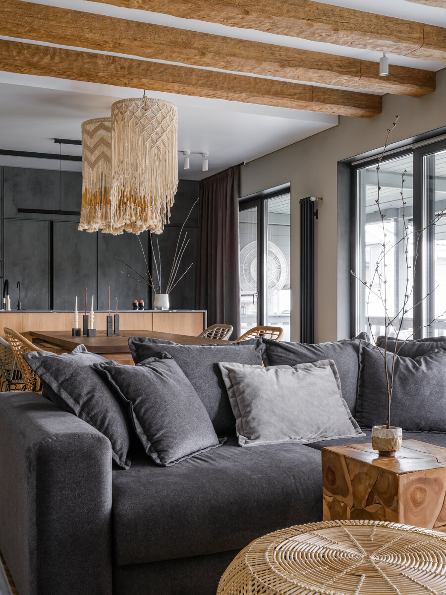 Дизайн и функциональность – вещи неразрывные и взаимосвязанные. Алла Кроль умело соединила в интерьере дизайн и функцию, сохранив при этом разнообразие вкусовых предпочтений: лаконичность современного интерьера для мужчины и женскую романтичность стиля бохо. Главные задачи в этом проекте – это учесть абсолютно противоположные вкусовые предпочтения заказчиков и разместить все необходимое по планировке на небольшой площади. Хозяин видел интерьер дома комфортными функциональным, со сдержанной цветовой гаммой, простыми четкими формами и практичными предметами мебели. Хозяйка же пожелала наполнить его натуральными материалами и элементами декора, которые создавали бы уютную атмосферу единства с природой. «Для меня важно, чтобы любое помещение было функционально продуманно и чтобы интерьер дома или квартиры отражал личность каждого жителя. Этот проект – подтверждение моего подхода: любой интерьер – это про атмосферу, которую мы создаем, а не про конкретный стиль», – делится Алла Кроль