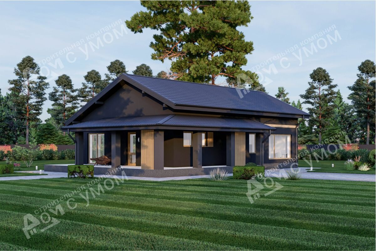 Это одноэтажный дом площадью 122 квадратных метра. Коттедж обладает привлекательным внешним видом и удобной организацией внутреннего пространства. В нем нет ничего лишнего, но при этом есть все для комфортной загородной жизни. Характеристики: Общая площадь: 170 кв.м