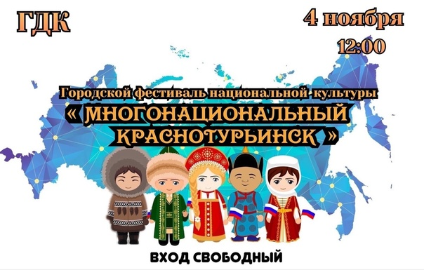 Городской Дворец культуры приглашает на городской фестиваль национальной культуры «Многонациональный Краснотурьинск». В программе: ярмарка национальных блюд, концерт творческих коллективов города.